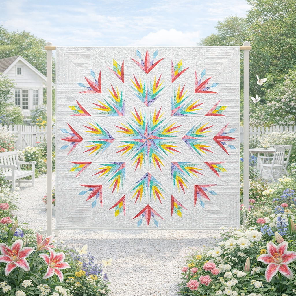 Inspired by the bold, spiky beauty of the stargazer lily in full bloom, this design radiates outward in a breathtaking burst of color and movement. Featuring fabrics from Free Spirit’s True Colors collection by Tula Pink — soft corals, sunny yellows, fresh aquas, lilac, and sky blue against a crisp white background — Stargazer Lily is light, airy, and absolutely perfect for spring.